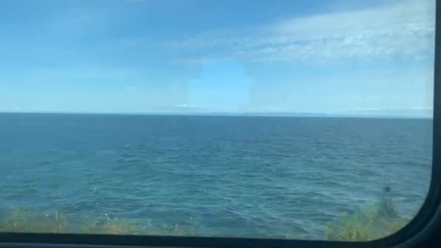Проезжая по Сибири, видим сквозь окно поезда озеро Байкал.