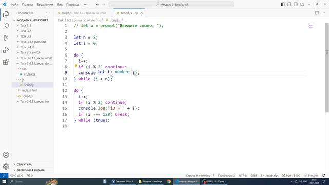 Javascript. Урок 3.6.1 (Циклы)