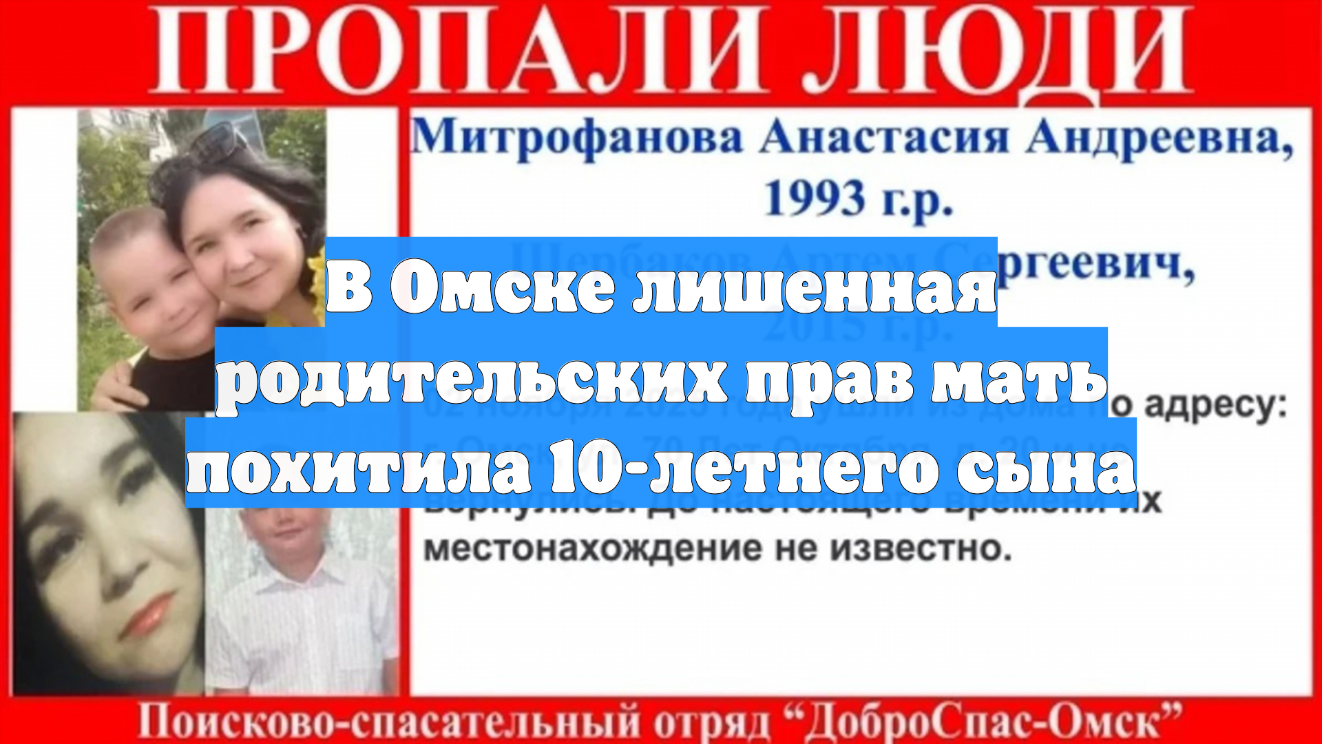 В Омске лишенная родительских прав мать похитила 10-летнего сына