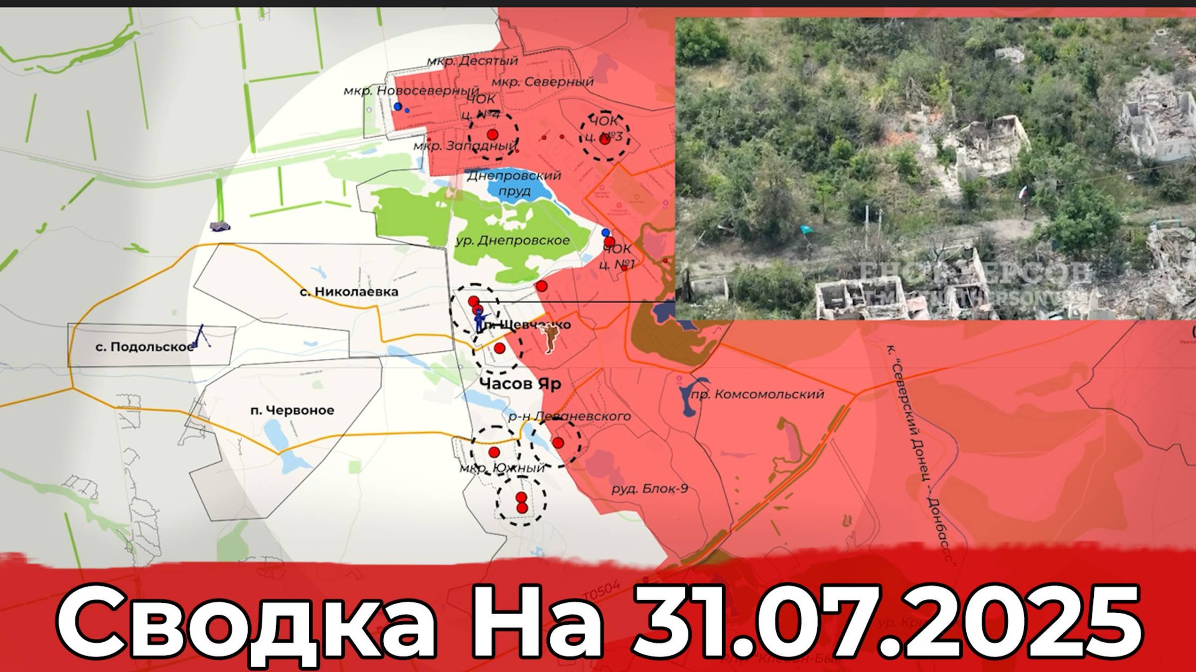 Друзья, поддержать наш проект вы можете, отправив денежный перевод на карту Сбербанка и Яндекс Кошелек: Карта Сбербанка -- 2202 2067 9350 6465 ЮMoney -- 410019779835638 Больше информации на нашем ТГ: https://t.me/oruzhejnyj_master Мы на Бусти: https://boosty.to/oruzhejnyj_master Мы на Platform: https://plvideo.ru/channel/EfKwaObjp-SR За прошедшие сутки произошли следующие изменения. На Краматорско-Дружковском направлении продолжаются бои. В Часов Яре десантники 98-й дивизии разгромили остатки украинского гарнизона. Воины с российскими флагами и флагами ВДВ обозначили свое присутствие в девяти местах: в цехе № 3, микрорайоне Западный, посёлке Шевченко, районе Леваневского и микрорайоне Южный. Показан пример в самой западной точке: в Шевченко. 2 бойца относительно свободно стоят на дороге и размахивают флагами. Разгромленным подразделениям 24-й и 16-й бригад ВСУ пришлось отойти на запад. Часов Яр переходит под полный контроль российской стороны. Урочище Днепровское не на всех ресурсах является частью этого города. Завершилась операция в битве за Часов Яр, которая началась в апреле прошлого года и закончилась спустя год и почти 4 месяца. Взята самая высокая возвышенность на этом направлении. Российская сторона достигла оперативного успеха. Впереди, для дальнейшего охвата Константиновки: Николаевка, Подольское, Червоное. Также развитие наступления в направлении Краматорска и Дружковки. Южнее, в районе Предтечино, мотострелки 6-й дивизии закрепились в его восточной части. На один километр улучшается положение российской стороны. ВСУ, с потерями доставляют малые штурмовые группы, которые прячутся в подвалах возле прудов. По ним работают артиллеристы и расчёты БПЛА. Противник испытывает трудности не только в зацеплении, но и в проведении ротаций, а также в подвоза материальных средств обеспечения. На подступах к южной окраине Константиновки, в Александро-Калиново появилось дополнительное подтверждение. В его северной части артиллерия ВСУ нанесла удар по российской позиции. Данный пункт полностью переходит под российский контроль. Заблокирован путь, проходящий через западную окраину Клебан-Быкского водохранилища. Расчёты БПЛА обрабатывают ВСУ на противоположной стороне искусственного водоема. В этом событии, оператор, FPV-дронами, уничтожил антенну разведки. Она установлена на блиндаже, который расположен на возвышенности. Уже и на этом участке создаются проблемы украинским силам. На Красноармейском направлении подразделения группировки “Центр” продолжают давить. В центральной части города противник обозначил присутствие российской стороны. В одном событии задействовал наземный дрона-камикадзе. Подъехав к строению, подорвался. Это самое дальнее место среди украинского гарнизона. В другом действии, украинский оператор осуществил сброс по постройкам. В обоих случаях, для противодействия, не задействовал свою пехоту. Признак образования брешей появился еще в съемке от 18-го июля, когда российская сторона обстреляла ВСУ чуть юго-западнее. В то же время, есть фиксации поражения противника между линией фронта и центром города. В центральной части Перше Травня воздушная разведка обнаружила пункт временной дислокации противника. Бойцы, получив данные, поразили данную точку. В другом событии, возле Новопавловки, артиллерия уничтожила склад боеприпасов. Как правило, подобные склады не размещают на
