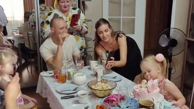 Александра задувает свечи на тортике