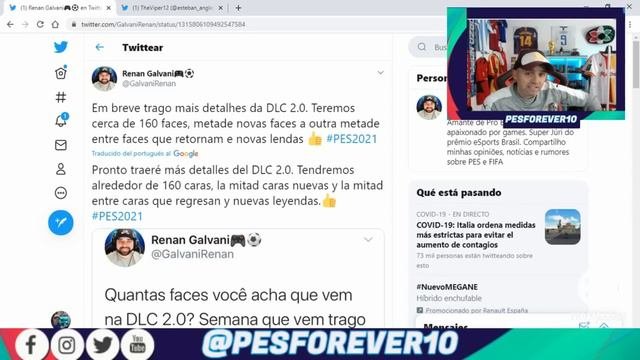 INFO DEL #DLC2.0 #PES2021 NUEVAS #FACES Y NUEVAS LEYENDAS INFO VIA GALVANI Y MAS... Conviértete en miembro de este canal para disfrutar de ventajas: https://www.youtube.com/channel/UC5__oRpnWPH-BTRZZDjOBPw/join 👍!SI TE HA GUSTADO !! EL VIDEO COMPARTELO Y SUSRIBETE AL CANAL : https://www.youtube.com/c/pesforever10?sub_confirmation=1&app=desktop LINK TWITTER RENAN GALVANI ; https://twitter.com/GalvaniRenan MAS INFO DE PES 2020 EN NUESTRA WEB DE EDITEMOS PES : 🇪🇸 : https://es.editemospes.com/ 🇵🇹 : http://pt.editemospes.com/ 🎤MICRO SAMSON METEOR MIC BRUTAL SONIDO : https://amzn.to/2JqZTvb 👍 SILLA NEW SKILL TAKAMIKURA : https://amzn.to/2YKdBhX ⚽🎮 PES 2020 XBOX ONE PREVENTA BUEN PRECIO : https://amzn.to/2xJb8c0 🎮⚽ PES 2020 PS4 PREVENTA BUEN PRECIO : https://amzn.to/2xJjKiM 👉TWITTER: https://twitter.com/PESFOREVER10 👉INSTAGRAM: https://www.instagram.com/pesforever10/ 👉TWITCH: https://www.twitch.tv/pesforever10