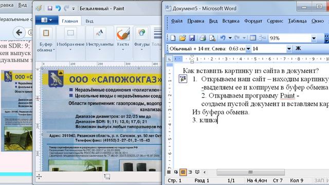 Картинка на сайте-копирование в Paint-копирование из Paint в наш документ