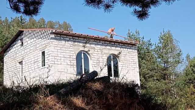Работы по строительству дома продолжаем. Сегодня закончили обрешетку крыши, подсыпали виноградную грядку с одной стороны обрешетки. На ужин готовим оладьи из свинной печени.
