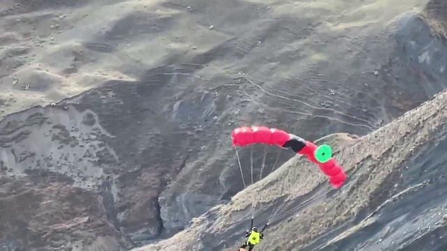 Экстремал из Дагестана совершил эпичный прыжок на мотоцикле в пропасть, закрепив парашюты и на себе