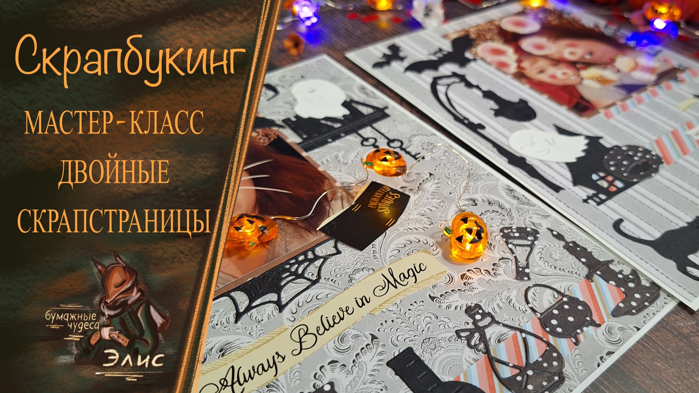 Скрапбукинг: двойные скрапстраницы. Мастер-класс. Хэллоуин.