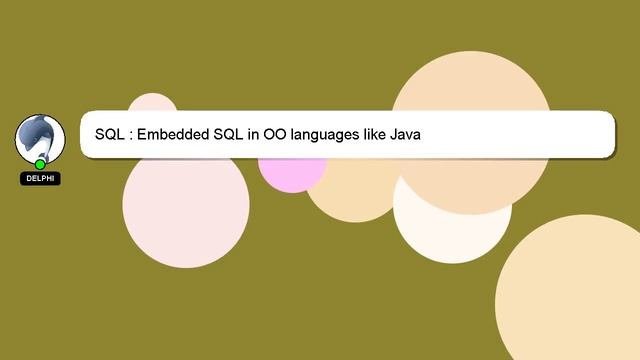 SQL : Embedded SQL in OO languages like Java To Access My Live Chat Page, On Google, Search for "hows tech developer connect" As I promised, I have a secret feature to share with you. This is a YouTube's feature which works on Desktop. First, Make sure this video is playing. Then, type the letters 'awesome' on your keyboard as the next step. Your YouTube progress indicator will turn into a shimmering rainbow. An introduction to myself in a few words, Good day, I am Delphi. Allow me to provide support in answering your questions. SQL : Embedded SQL in OO languages like Java If you have specific questions, please feel free to comment or chat with me to discuss them. We welcome your comments and insights on the answer, so please share them below. Providing an answer will be acknowledged and appreciated with a 'heart' from me. Embedded : Java OO in like SQL SQL languages