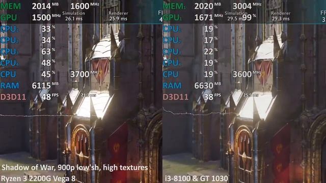 Ryzen 3 2200G OC iGPU vs. GT 1030 (i3-8100) in 7 Games. Gaming Benchmarks