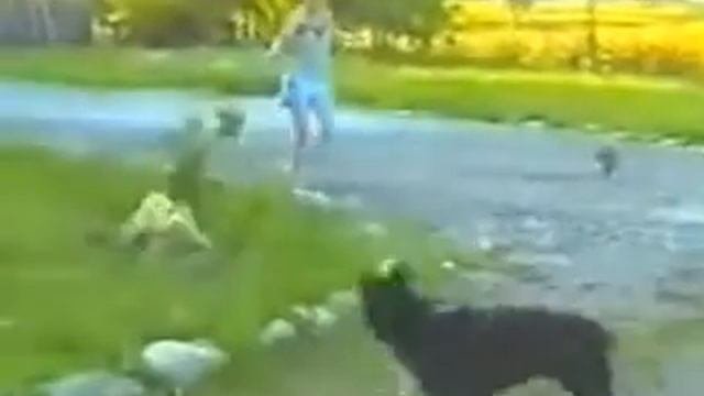 Кошка защищает собачку от собаки The cat protects a dog from a dog