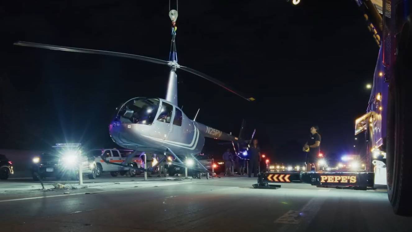 Вертолету пришлось вынужденно садиться на хайвэй, кто его будет убирать с дороги?