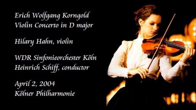 Erich Wolfgang Korngold: Violin Concerto in D major, Op.35 I. Moderato nobile (00:00) II. Romanze (08:36) III. Allegro assai vivace (16:44) Hilary Hahn, violin WDR Sinfonieorchester Köln Heinrich Schiff, conductor April 2, 2004 Kölner Philharmonie