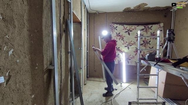 СТРОЮ ДОМ МЕЧТЫ ОБШИВАЮ СТЕНЫ В ГОСТИННОЙ ЭТО БЫЛО СЛОЖНО ОДНОМУ НО Я НАШЕЛ ВЫХОД