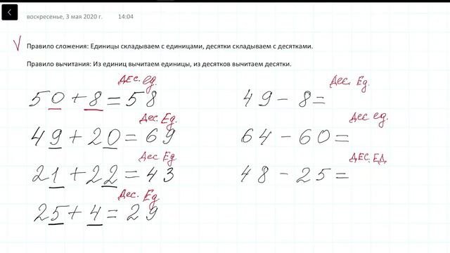 Сложение без перехода через десяток