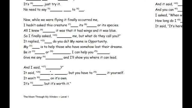 Free English Lessons with Music - The Moon Through My Window - Level 1, Lesson 4: "Opportunity"