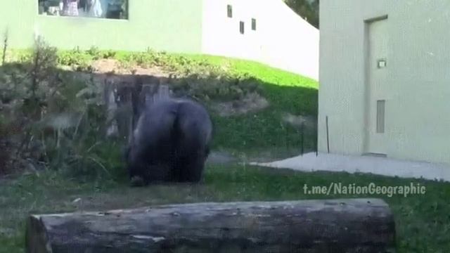 Горилла Шабани машет сыну и предлагает ему пойти поиграть))