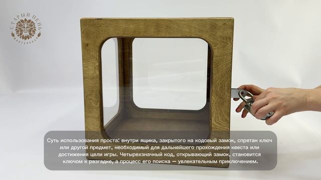 Описание Ящик Форд Боярд с кодовым замком Деревянный ящик с кодовым замком – универсальный реквизит, который добавит интриги и азарта в любое мероприятие. Он идеально подходит для квестов, тимбилдингов, дней рождений и других развлекательных программ, где требуется разгадывание головоломок. Суть использования проста: внутри ящика, закрытого на кодовый замок, спрятан ключ или другой предмет, необходимый для дальнейшего прохождения квеста или достижения цели игры. Четырехзначный код, открывающий замок, становится ключом к разгадке, а процесс его поиска – увлекательным приключением. Преимущество этого ящика в его гибкости. Задания, ведущие к разгадке кода, могут быть самыми разнообразными: от решения математических задач и расшифровки анаграмм до поиска подсказок, спрятанных в помещении или на территории мероприятия. Габариты ящика (40х40х40 см) позволяют разместить внутри достаточно крупные предметы, а крючок на потолке предоставляет дополнительную возможность для подвешивания ключа или другого приза, делая его более заметным и желанным. Замок входит в комплект, что избавляет от необходимости приобретать его отдельно.
