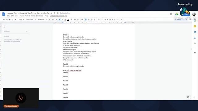 Good evening folks. Tonight we are going to do some writing and rewriting of Jaguar Warrior Chapter 15 and some outlining, After Chapter 15 and outlining we go back to rewriting Chapter 4, 5 to 9, since I worked ahead. If you want to see what I created with the help of my hardworking friend (NEF). Jaguar Warrior Issue 1: Death of the Family (ENG) is available on thejaguarwarrior.com as a responsive webcomic for both mobile devices and desktops. And on globalcomix. And if you like what you saw. go to Gumroad and pick up the digital edition for €2.00 to help out me and my hardworking friend and artist, editor NEF. The reason for the €2.00 price tag is that I want to combine chapter 1-4 into one print volume. if you like to see what I created with my hardworking friend called NEF. Jaguar Warrior Issue 1: Death of the Family is available as a vertical scrolling webcomic at www.thejaguarwarrior.com and a more traditional format on globalcomix. In both English and Spanish. And if you like what you saw. Grab yourself a digital edition at Gumroad for $2.00 to get me into their Discover program!!! Links down below: www.thejaguarwarrior.com https://globalcomix.com/c/guerrero-jaguar-/chapters/es/1/ https://globalcomix.com/c/jaguar-warrior-/chapters/en/1/1/1 https://ajhodes.gumroad.com/l/JW1D https://ajhodes.gumroad.com/l/GJPD1 For physical copies you could send me a DM through Twat and we could make a deal about shipping and stuff. The physical will be 8 EUR (without shipping) and they will also be put on Gumroad this or next month depending on my day job and private stuff. And last, but not least. Issue 2 is currently in the works and will contain a silence before the storm. Actually I lied. We are going to see a contrast between two civilizations that who's history is more connected than you think. That's all. Hasta la proxima! PS: I don't own the music for this Stream. The copyright of the music belongs to the rightful owners and Streamyard and I don't make any profit from it. Like at all. I just used it for "educational purposes" according to the principals of fair use.