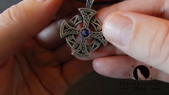 Get it here: http://themoonlightshop.com/products/the-solstice-solar-cross-necklace Transcript: Hi... This is Hjalte from The Moonlight Shop and in this video, I will show you the beautiful and highly detailed Solstice Solar Cross Necklace from our shop. The Solar Cross is an ancient celtic symbol that has been used to celebrate and worship the sun for many, many years. It consists of the cross and a circle behind it and is closely related to the 4 season and the suns movement throughout the year. The four parts of the cross symbolizes the 2 solstices and the 2 Equinoxes. The circle behind the cross symbolizes the year which is divided into 4 seasons. As you can see, there are celtic spirals and knot patterns which are highly detailed and stands out. In the middle of the cross is a birthstone crystal. This necklace here has the birthstone for June. The Lavender Tanzanite. Besides getting it with your own personal birthstone, you can also get this necklace with the Black Onyx stone or a Rainbow stone. I really like this necklace because it is very non threatening for other people. If you can't or won't wear your pentacle for some reason, but you still want to have some meaningful and empowering jewelry on you, the Solstice Solar Cross is the perfect choice. The solar cross gives you energy from the sun and the combination with the powers from the birthstone, makes this a very powerful pendant. The necklace itself is made from lead and nickel free pewter, which makes it very durable and allergy friendly, so even if you are usually allergic to most jewelry, you should be able to wear this just fine. The pendant has a good size and weight to it. It measures just around 1.5 inch across and a little more from top to bottom because of the loop. It has a nice weight to it. You can feel that this is a quality necklace. This is a piece of jewelry that will last for many many years of daily use. The pendant comes with an 18 inch leather cord with a lobster clasp that allows you to adjust the length with around 2 inches. If you'd rather put it on something else, there's plenty of room in the loop to do that. So, to conclude, this is a very beautiful and powerful necklace. The birthstone in the middle makes is very fashionable and unique. If you are into paganism or wicca and are looking for a necklace with meaning and power that you can use every day and in every occasion, this is the obvious choice. Thank you for watching and blessed be.