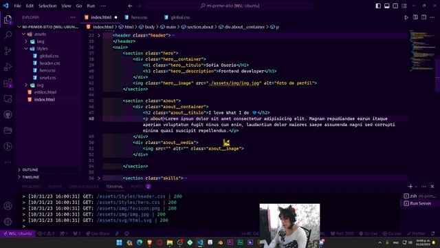 Color Hunt: https://colorhunt.co/ Removebg: https://www.remove.bg/es Squoosh: https://squoosh.app/ Optimizilla: https://imagecompressor.com/es/ Blob Maker: https://www.blobmaker.app/ Gradient generator: https://cssgradient.io/ ------------------------------------------------------------------------------------------------------------ ❤️Mi GitHub: https://github.com/SofiDevO ?Mi portafolio: https://itssofi.dev/ ?Prueba mi Theme de Visual Studio Code: https://marketplace.visualstudio.com/items?itemName=SofiDev.sofidev ---------------------------------------------------------------------------------------------------- Inicio - 00:00 Intro - 00 :28 Iniciando nuestro proyecto - 00:34 Agregando Fuentes - 01:03 Dando estilos al hero section - 03:05 Propiedad min.width - 14:04 Agregando paleta de colores - 14:52 Creando variables globales - 16:42 Agregando sección About me - 22:24 Usando herramientas en la WEB - 27:35 Comprimiendo imágenes - 28:38 Background-image - 32:24 Resultado ? - 50:38 Despedida - 50:47