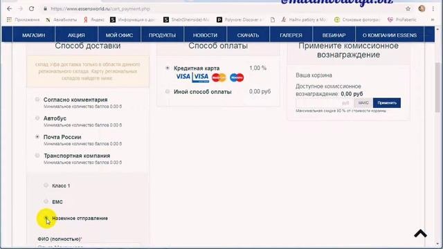 Как сделать заказ на сайте компании ESSENS