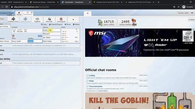 I'm back! In this new video we take a look at G-Max Inteleon and how you can use it effectively in competitve double battles for Pokémon Sword & Shield. Links: https://www.serebii.net/pokedex-swsh/inteleon/ https://www.serebii.net/games/criticalhits.shtml https://play.pokemonshowdown.com/teambuilder https://www.pikalytics.com/pokedex/ss/inteleon https://www.babiri.net #/teams?pokemon=Inteleon Support the channel: https://www.streamlabs.com/Rawbchu Join the Discord: https://discord.gg/Hy8ppJ #GigantamaxInteleon #PokémonSwordShield #Pokémon