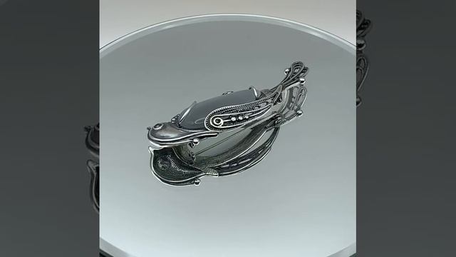 Серебряная брошь со стеклом и кошачьим глазом Б13312378