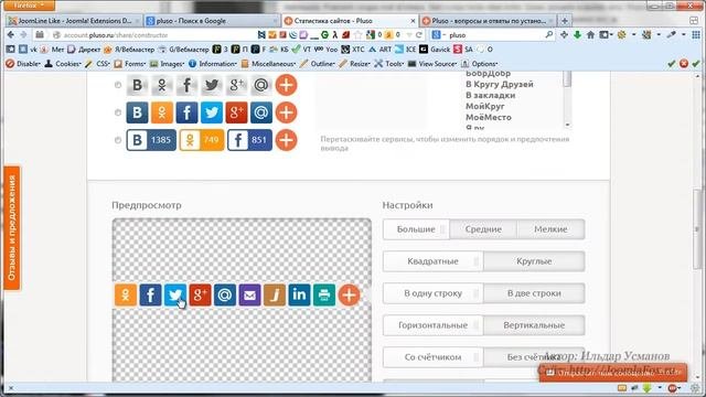 3. Социальные кнопки Pluso для Joomla сайта. Урок 1