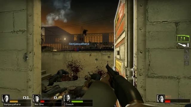 TROLLING THIS NOOB TRYING TO GET IN THE DOOR WHILE ZOMBIES ATTACK GAMEPLAY IS FROM LEFT 4 DEAD 2 I BELIEVE THIS WAS A CUSTOM L4D2 STORY MAP