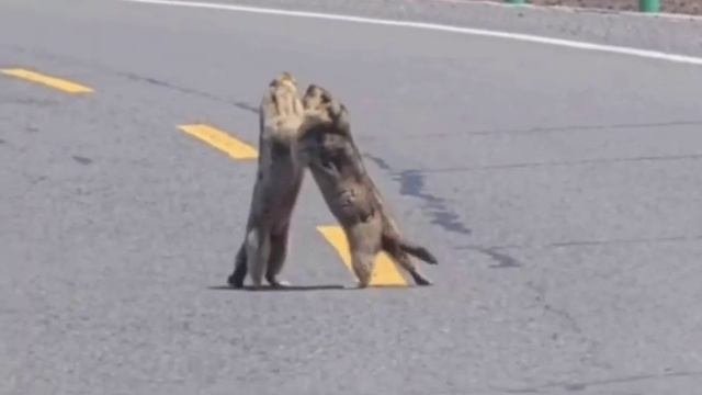 Видео дня: в Китае два сурка схлестнулись прямо посреди дороги. Водители не стали вмешиваться и терп