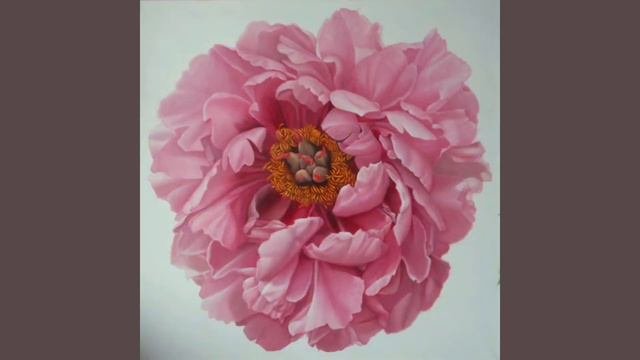 Творческий процесс написания большой картины с реалистичным пионом.