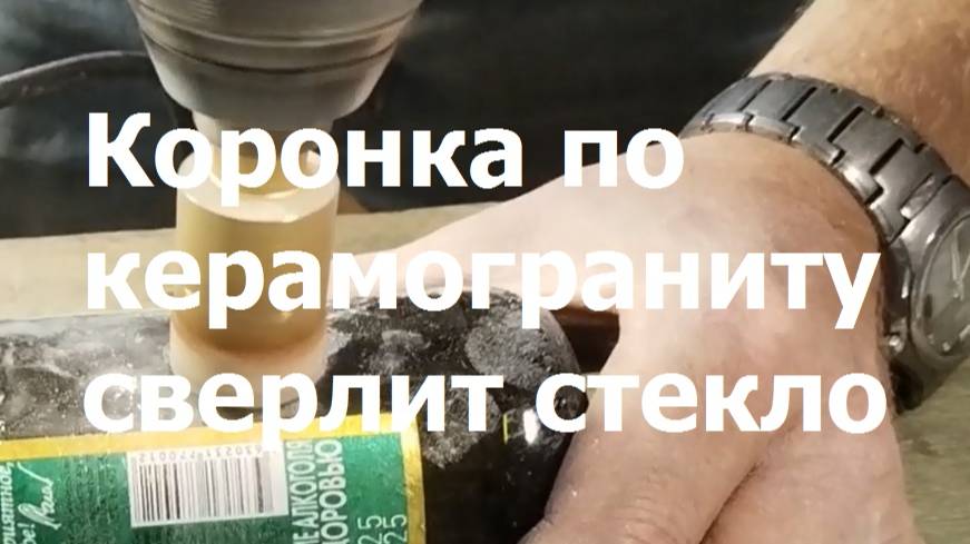 Ролик о применении коронки по керамограниту EMAR для сверления стекла. Просверливание трех отверстий в стеклянной тонкостенной бутылке. Тест от EMAR.