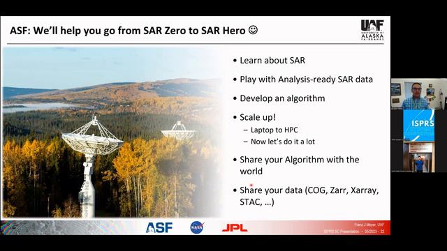 The ISPRS Student Consortium (ISPRS SC) Webinar Series The Alaska Satellite Facility: Radar-based Earth Observation from the Center of Alaska. The first webinar of the ISPRS SC Webinar Series for this year is on "The Alaska Satellite Facility: Radar-based Earth Observation from the Center of Alaska" featuring Dr. Franz Meyer, Chief Scientist, ASF. About the Speaker: Meyer has spent his career working with space agencies around the world to develop processing techniques and methods for synthetic aperture radar, or SAR, data. These techniques have been used to explore signals related to surface deformation such as earthquakes and volcanic eruptions. Recently, his research has expanded into the development of remote sensing-based hazard monitoring. He has led trainings around the world to help governments and organizations increase their capacity for radar techniques and hopes to transform SAR into a tool to meaningfully influence people’s lives on a daily basis. --------------- About the ISPRS SC The International Society for Photogrammetry and Remote Sensing Student Consortium (ISPRS SC) is the official representation of the students and the youth to ISPRS. The main purpose of the ISPRS SC is to link students, young researchers and professionals in different countries, who are interested in photogrammetry, remote sensing and spatial information sciences. ISPRS SC also aims to provide a platform for exchange of information and to organize student-specific events and other activities that integrate students and the youth more effectively into ISPRS activities. For more information about the ISPRS SC, please visit our website: http://sc.isprs.org/