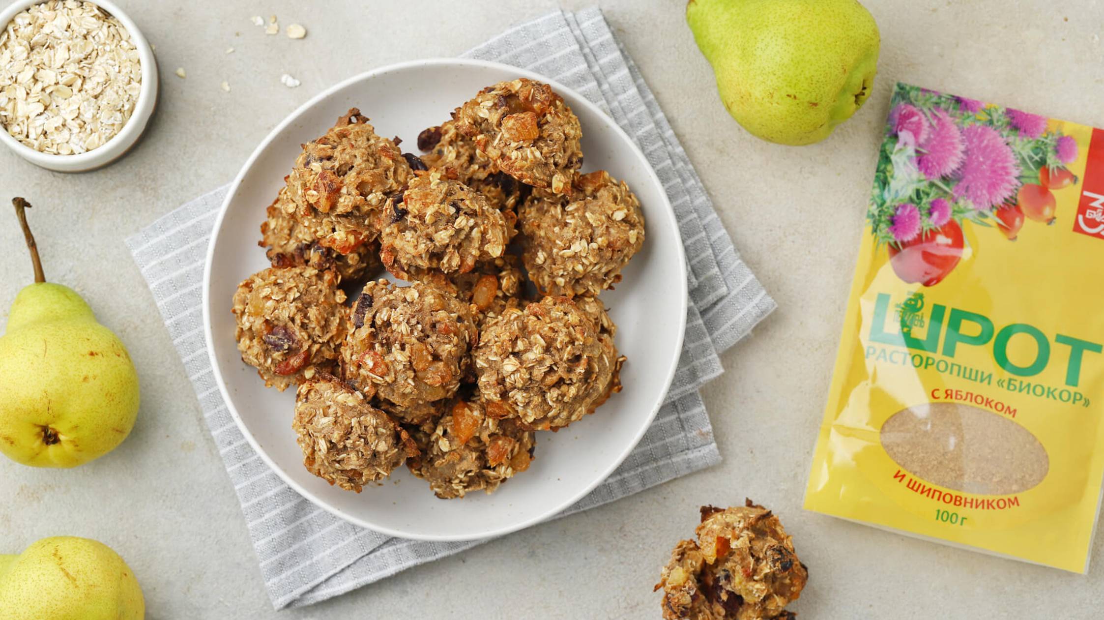 Овсяное печенье с грушей, сухофруктами и шротом расторопши