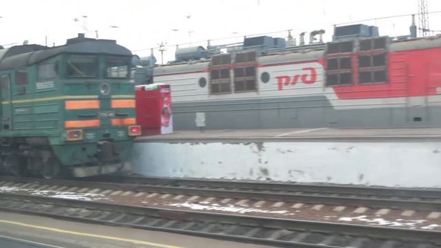 Вид из поезда на станцию Лиски. Катящийся вагон. Много электровозов ВЛ80