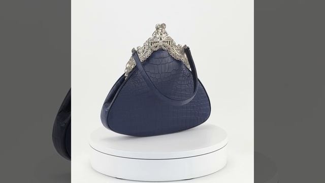 Реконструированная сумочка из кожи крокодила на оригинальной металлической рамке покрытой серебром начала 20 го века