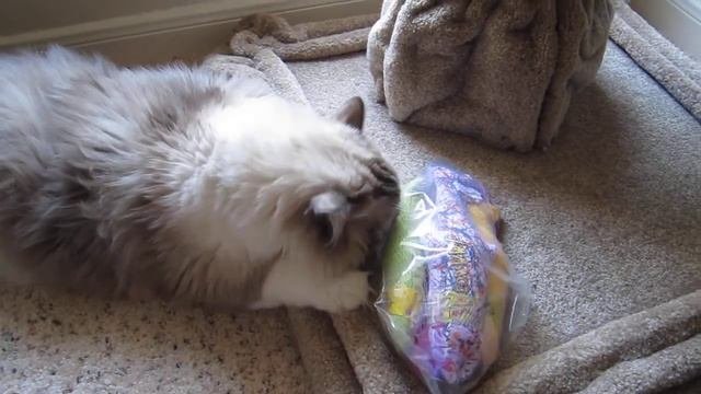 Tyco: Blue-Mitted Ragdoll Cat Pushes Yeowww! Catch of the Day Around