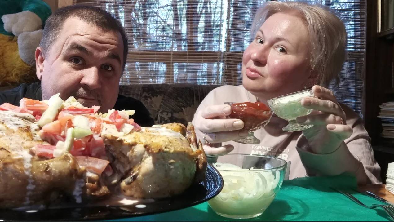Мукбанг - курица гриль фаршированная овощами