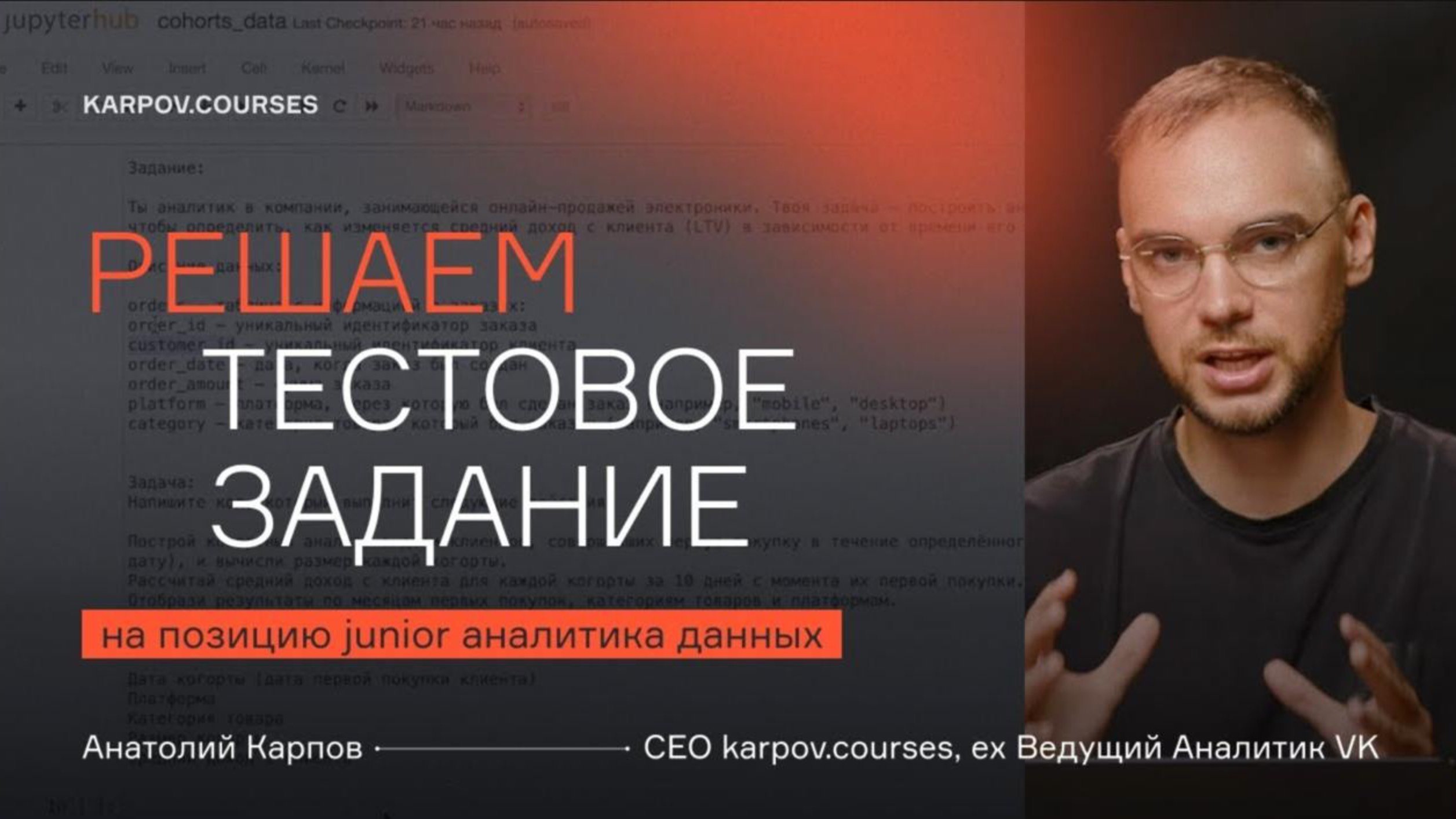 Разбор тестового задания на позицию junior аналитика данных | Анатолий Карпов | karpov.courses