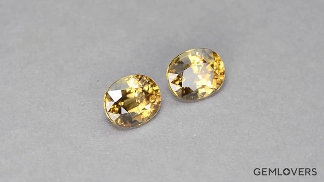 https://gemlovers.ru/kamni/cirkon/poludragoczennyie-zheltyie-czirkonyi-zi-1811-117 Дивная пара редких полудрагоценных цирконов интенсивного желтого цвета. Камни тщательно подобранны по оттенку и форме, что делает их настоящей находкой для истинного ценителя. Общая масса двух экземпляров составляет 11.70 карат. Их происхождение - Танзания. В целом, представленная пара цирконов производит весьма приятное впечатление.