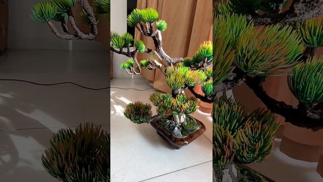 Бонсай искусственный , аналог белой японской сосны, изготовлено из дерева, пластика и керамического горшка. По желанию изготовим подставки любого цвета и размера. Современное направление в интерьере. Смотрится шикарно в любом месте Вашего жилья или офиса.
