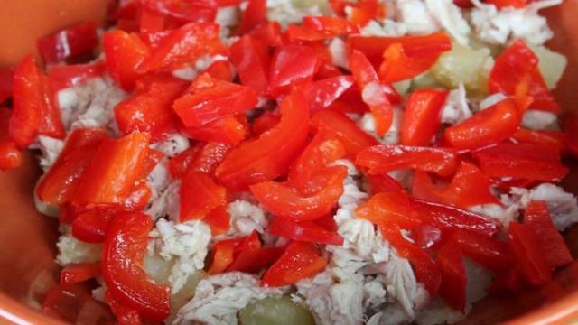 Картофельный салат с курицей, перцем и зеленью