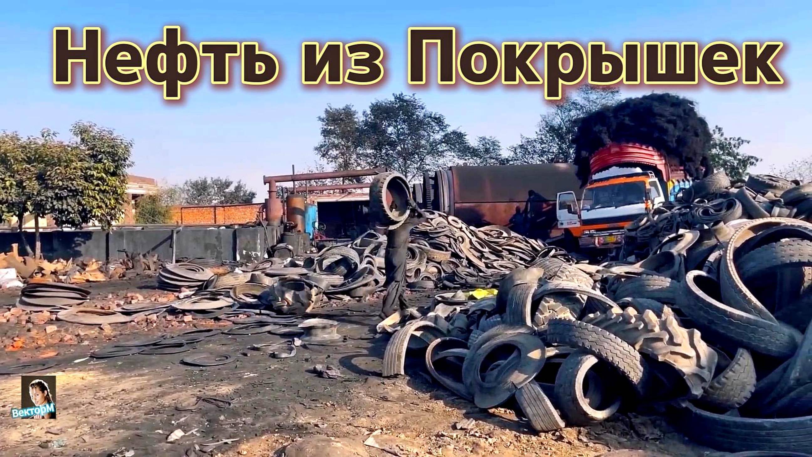 Процесс переработки и добычи нефти из старых покрышек.