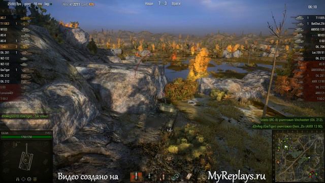 World of Tanks (WOT) Победа Бой игрока SolJah на танке T54E1 03 февраля 2013 года в 20:07 Карта: Карелия Получено опыта: 3642 Получено кредитов: 81936 Достижения в бою: Карточка боя: http://www.myreplays.ru/rt/32eab002-3fd8-0fb7-5286-510f747cc7c8 Если хотите такое же видео из своего боя, скидывайте реплей на электронный адрес [email protected] В течение 5 минут получаете доступы в систему и ссылки на статистику своего боя, через некоторое время получаете ссылку на видео. Все подробности на http://www.myreplays.ru или на официальном форуме игры http://forum.worldoftanks.ru/index.php?/topic/454521-myreplaysru