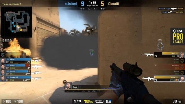 Cloud9 vs eUnited - ESL Pro League Season 10 NA - map2 - de_mirage [MintGod]