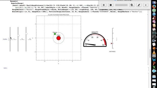 This video shows an electron in an orbit around a proton, with dynamic graphics of orbit, gravity and distance. Wolfram Mathematica code DynamicModule. Made by Rubens Zimbres