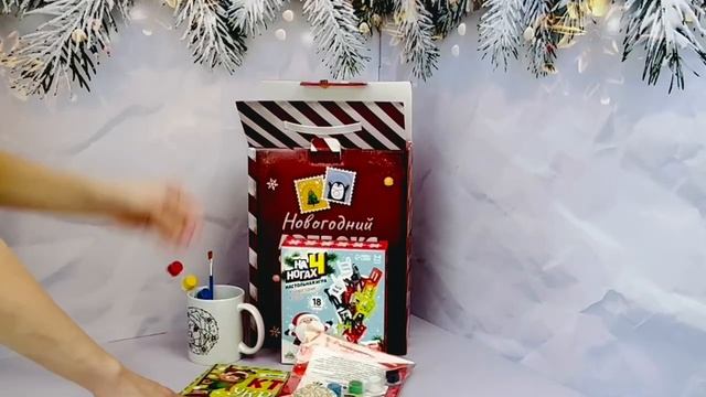 В набор входит: Подарочная коробка 1. Игра настольная "Стульчики новогодние" 2. Книга-Квест "Кто украл письма" со скретч-слоем 3. Набор для росписи "Кружка-раскраска" 4. Набор для творчества "Деревянные елочные игрушки" с акриловыми красками. 5. Мешочек с играми и головоломками (наполнение мешочка может отличаться от представленного на видео)