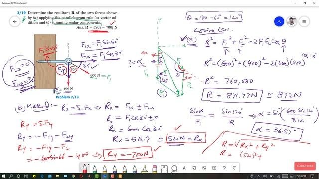 Statics Problems | P 2.19 & P 2.20 | Resolution of Vector into Components | Engineers Academy