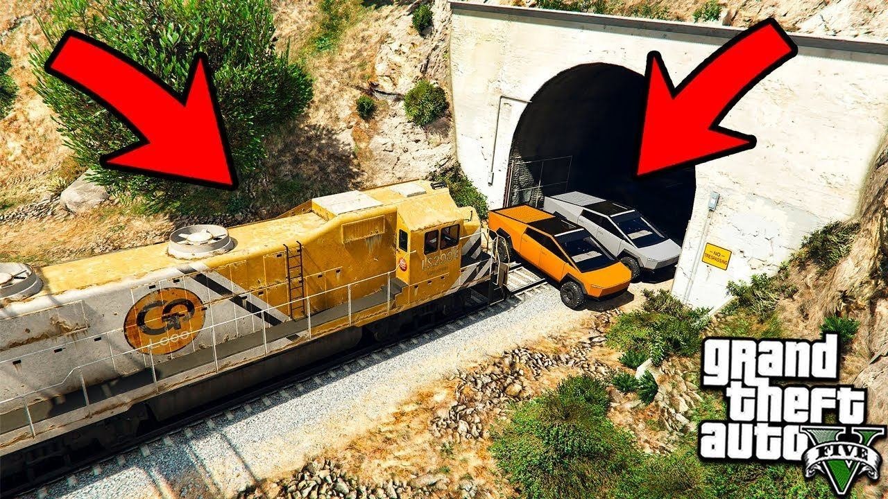 Сможет ли Тесла Кибертрак остановить Поезд в Гта 5 моды! Как остановить поезд в Gta 5 моды