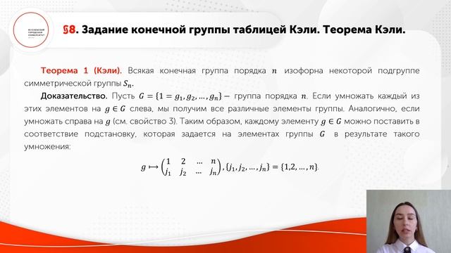 Задание конечной группы таблицей Кэли. Теорема Кэли.
