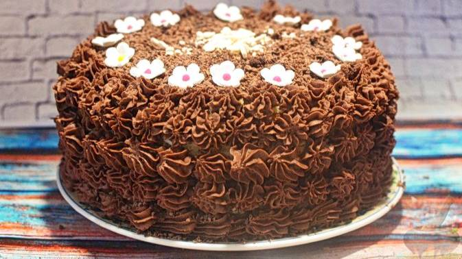 Торт немного необычный - коржи готовятся на майонезе и сгущенке. Крем — густая сметана, взбитая с сахаром.